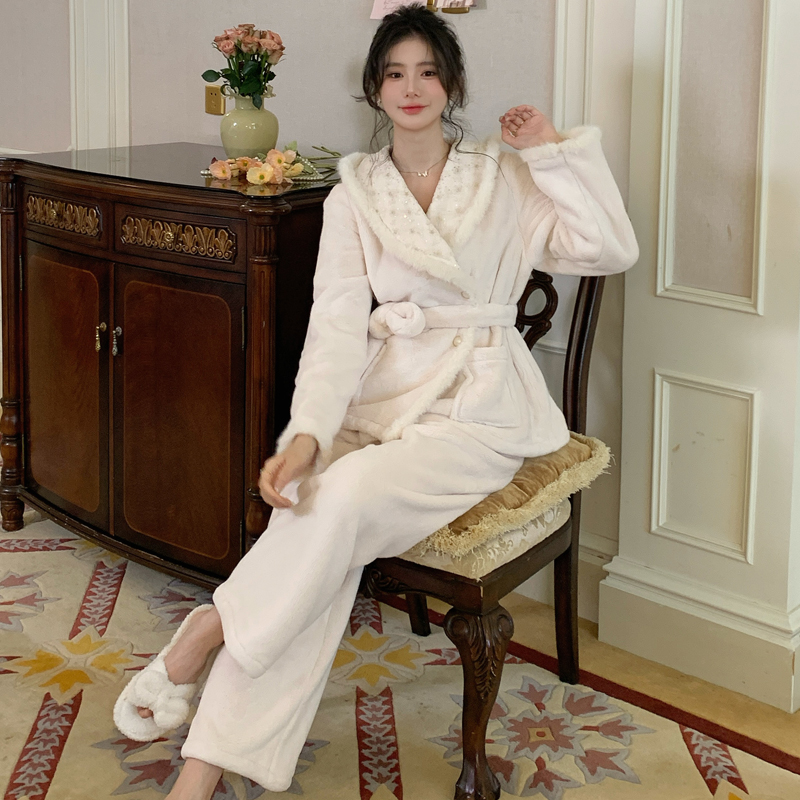 法式高级感女士双面绒睡衣女秋冬2025新款女款加厚家居服套装冬季