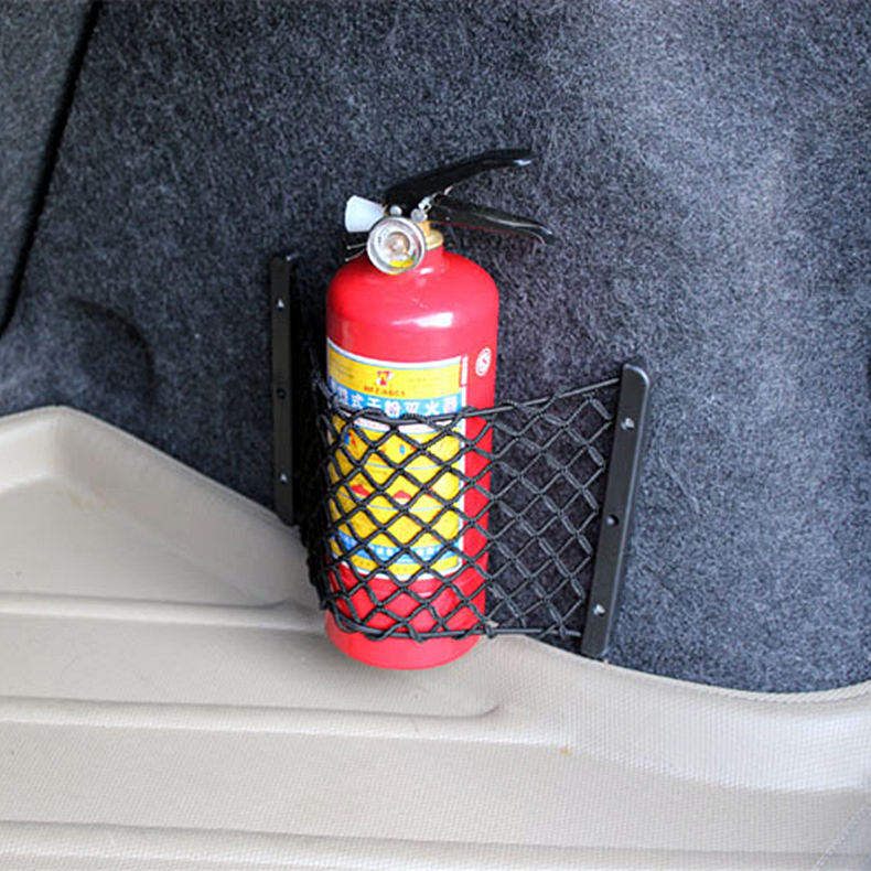 汽车魔术贴双层网兜后备箱收纳储物网车内置物袋车载灭火器固定网