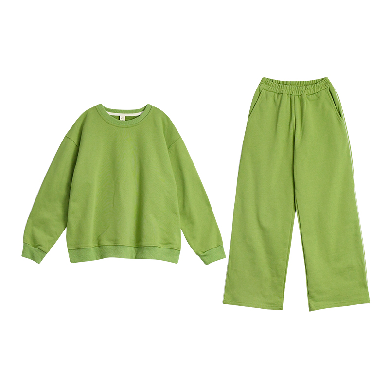 文艺2秋冬加绒绿色卫衣套装