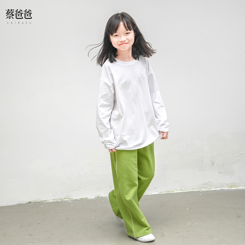 蔡爸爸童装加绒卫衣新款秋冬装男女大童绿色文艺卫衣套装1115+722