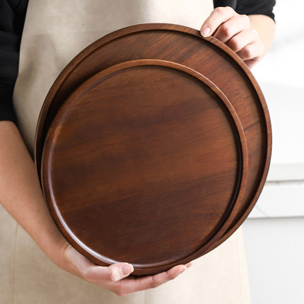 日式木质托盘茶盘木托盘木盘圆形茶水杯子收纳家用放茶杯餐盘果盘