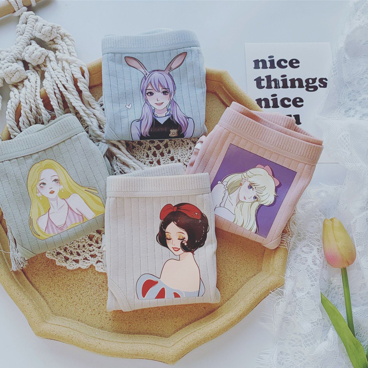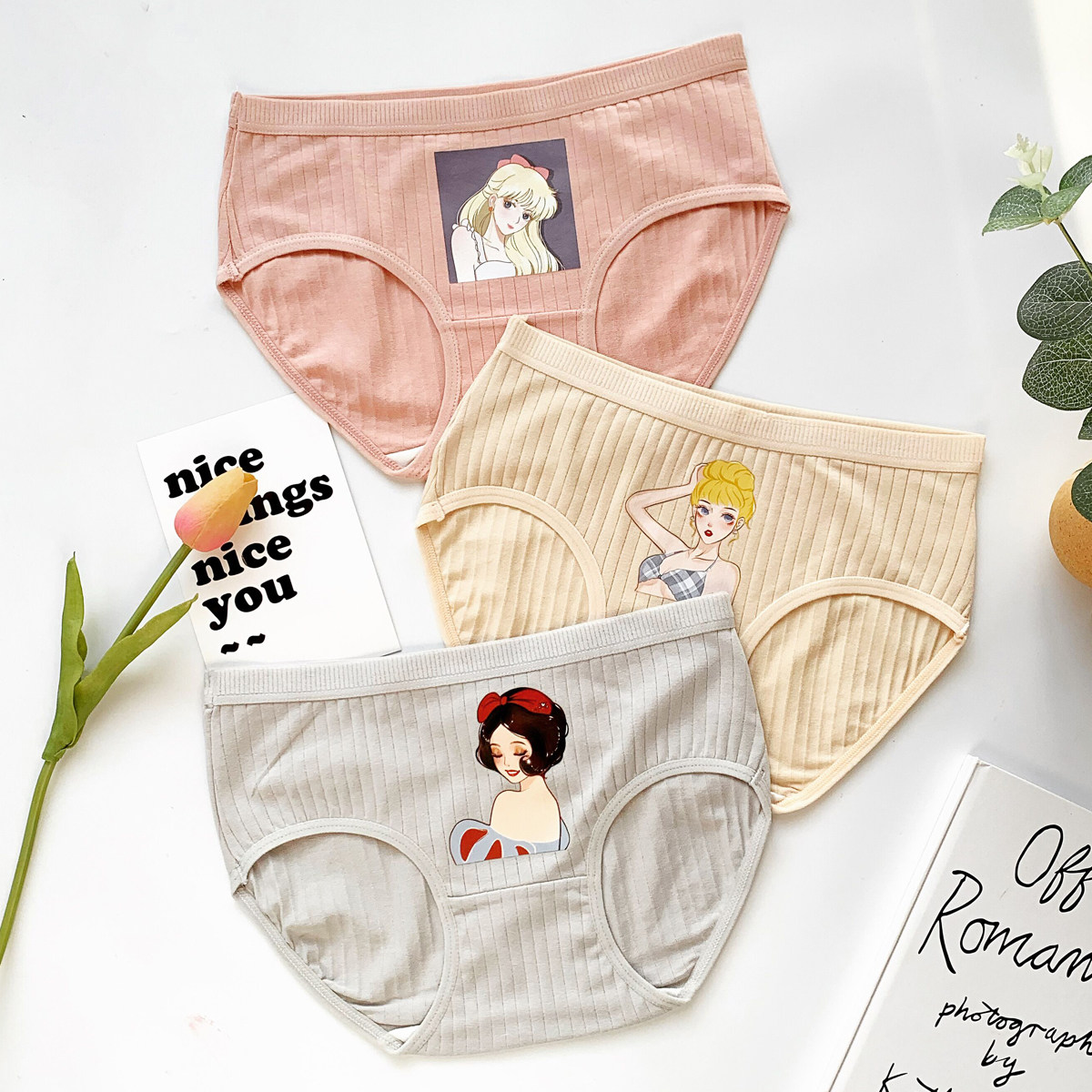 3条装 纯棉格纹中腰三角内裤少女甜美卡通印花条纹大码透气女内裤