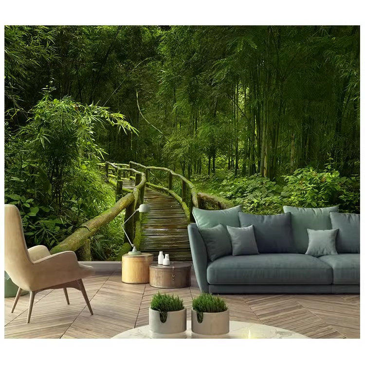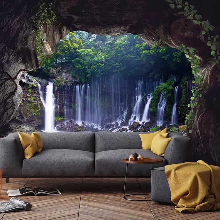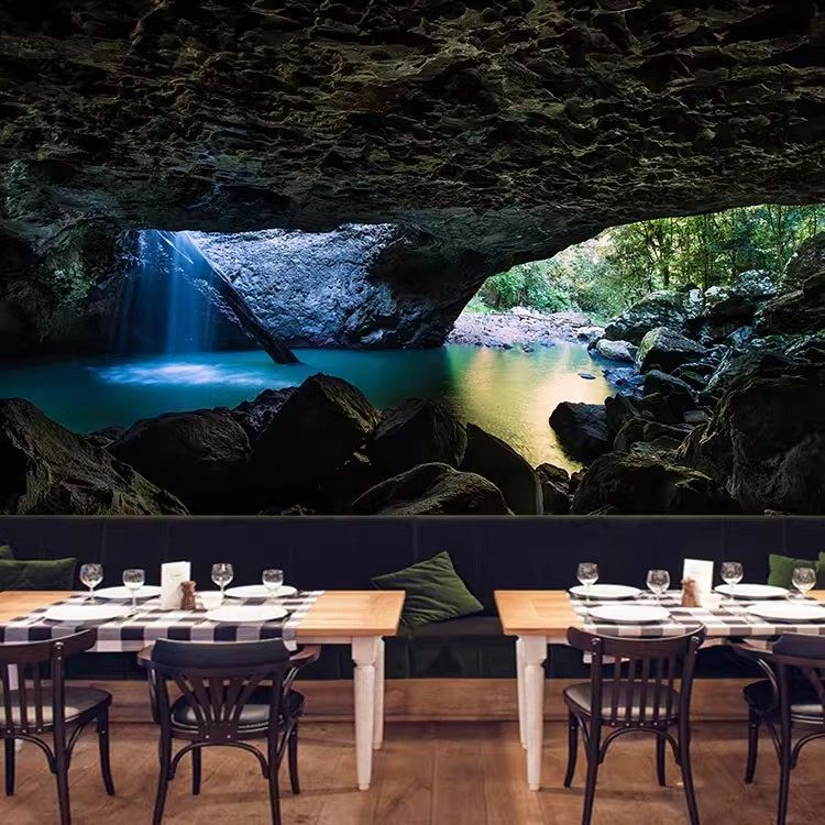 3d立体创意森林墙贴纸大自然风景网红餐厅自粘画山洞延伸视觉壁纸