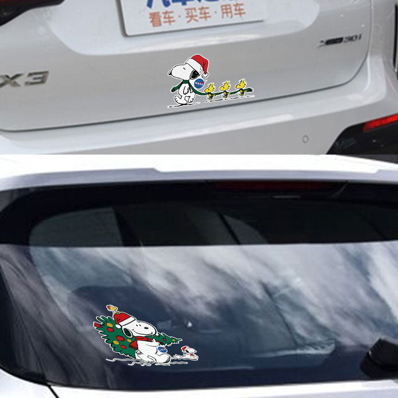 NASA联名史努比圣诞节反光电动车摩托车汽车贴纸车门身贴后玻璃贴