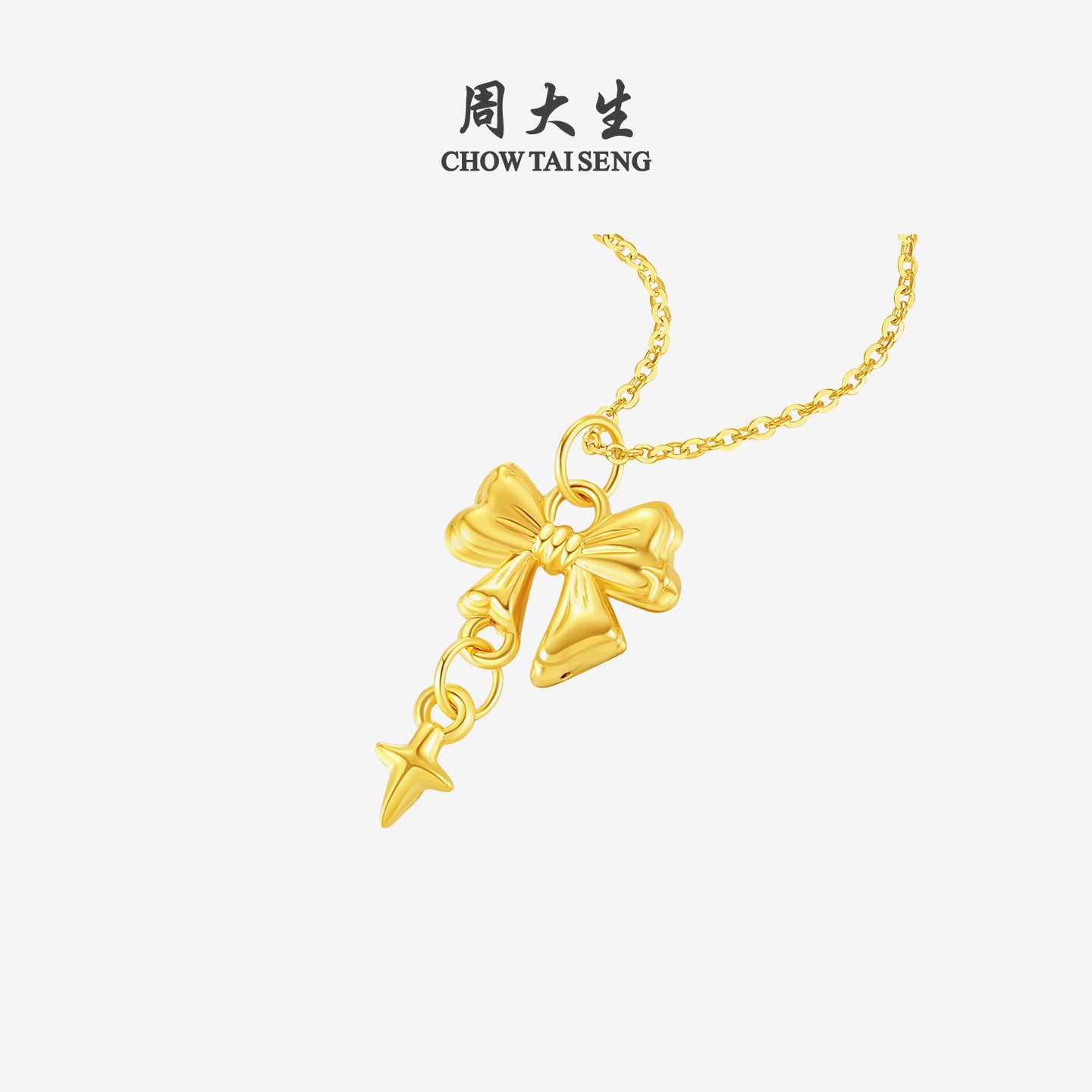 周大生星语蝴蝶结黄金女款吊坠硬金足金挂坠配项链妇女节送女朋友