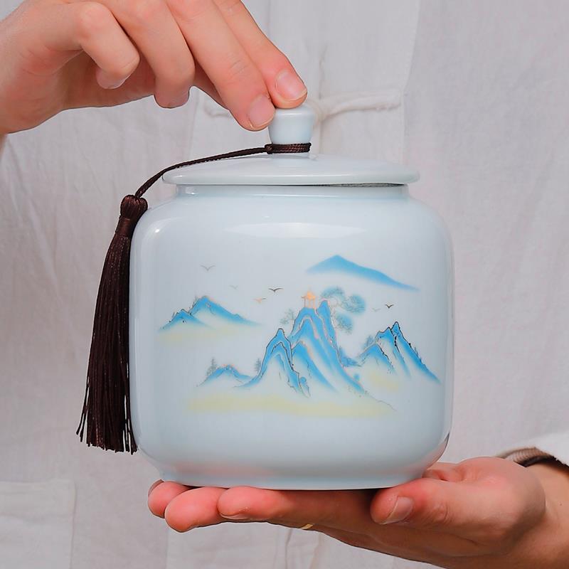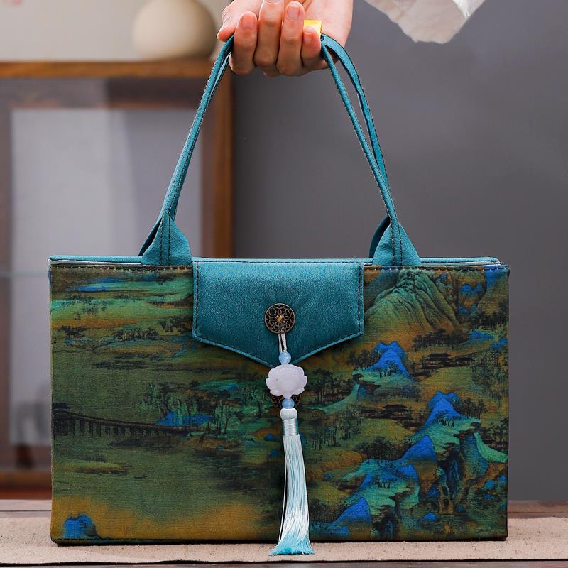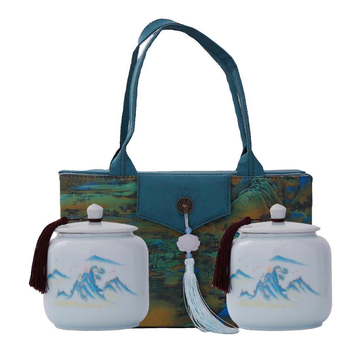 复古山水布包陶瓷茶叶罐礼盒装红茶龙井碧螺春普洱白茶包装盒空盒