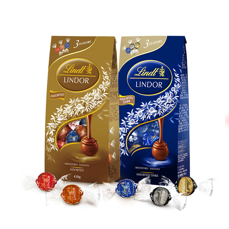 【官方授权】Lindt/瑞士莲 软心精选牛奶黑巧克力420g零食礼物