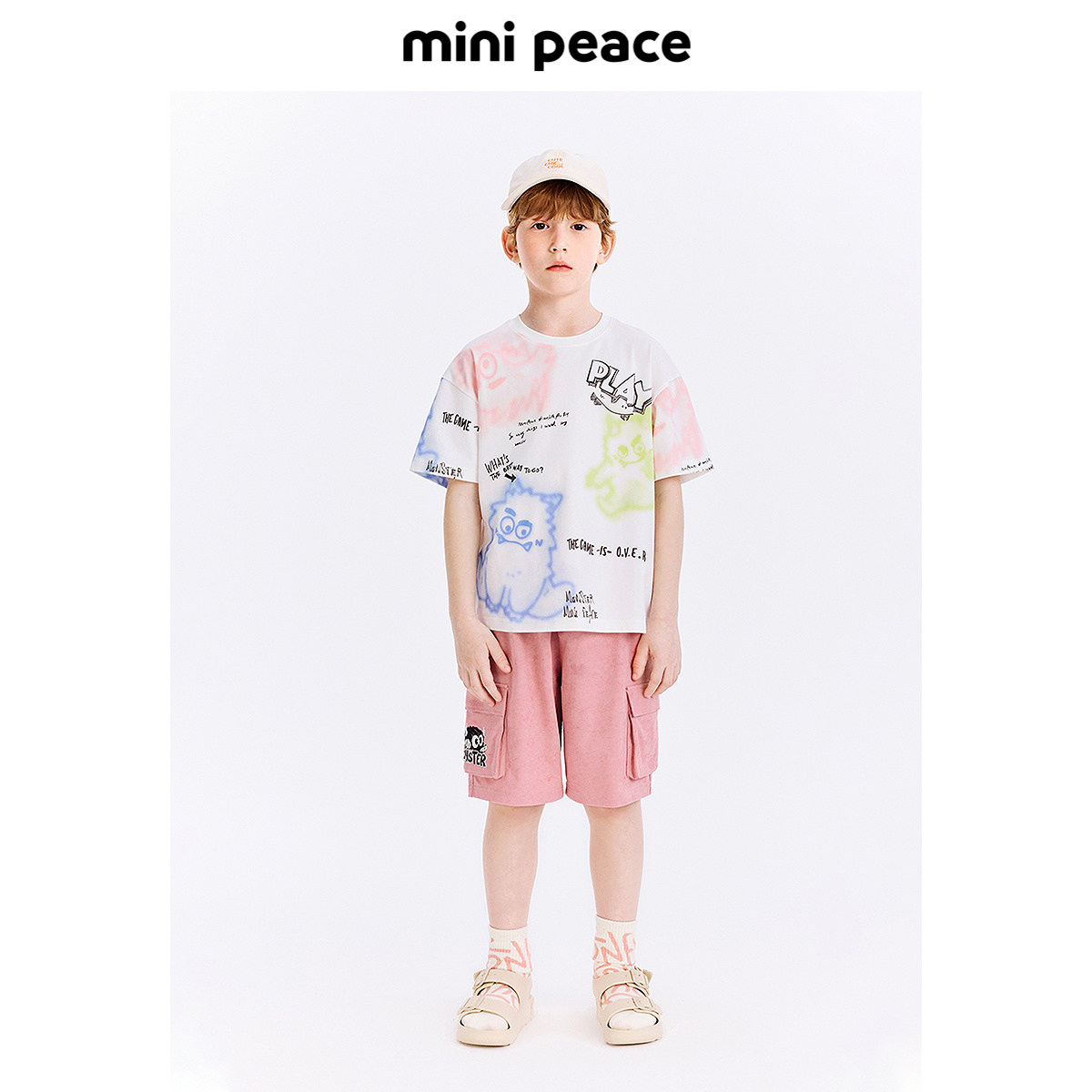 MINIPEACE太平鸟童装男童工装短裤夏季新款粉色儿童五分卫裤潮
