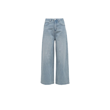 全棉复古高腰宽松阔腿喇叭9分裤W24AT1007