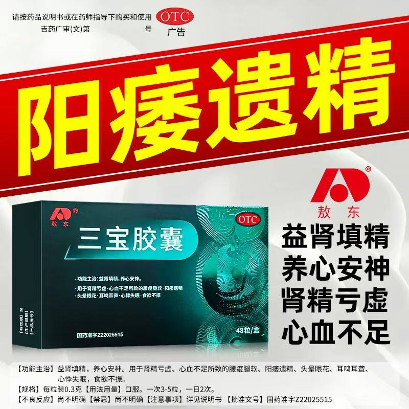 吉林敖东三宝胶囊男士阳痿遗精补肾地黄肉苁蓉人参鹿茸官方旗舰店