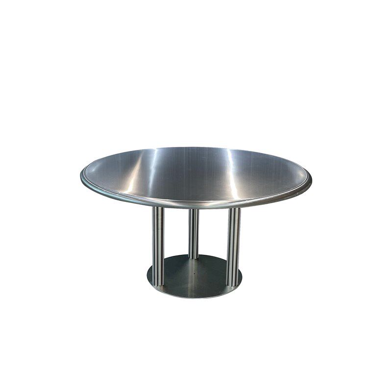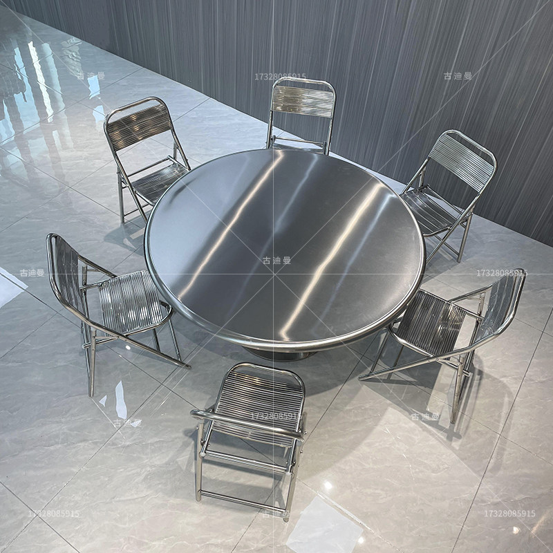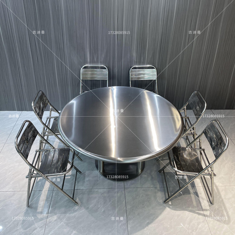 网红工业风大排档餐厅韩式圆形z餐桌不锈钢双层大圆桌满板折叠椅
