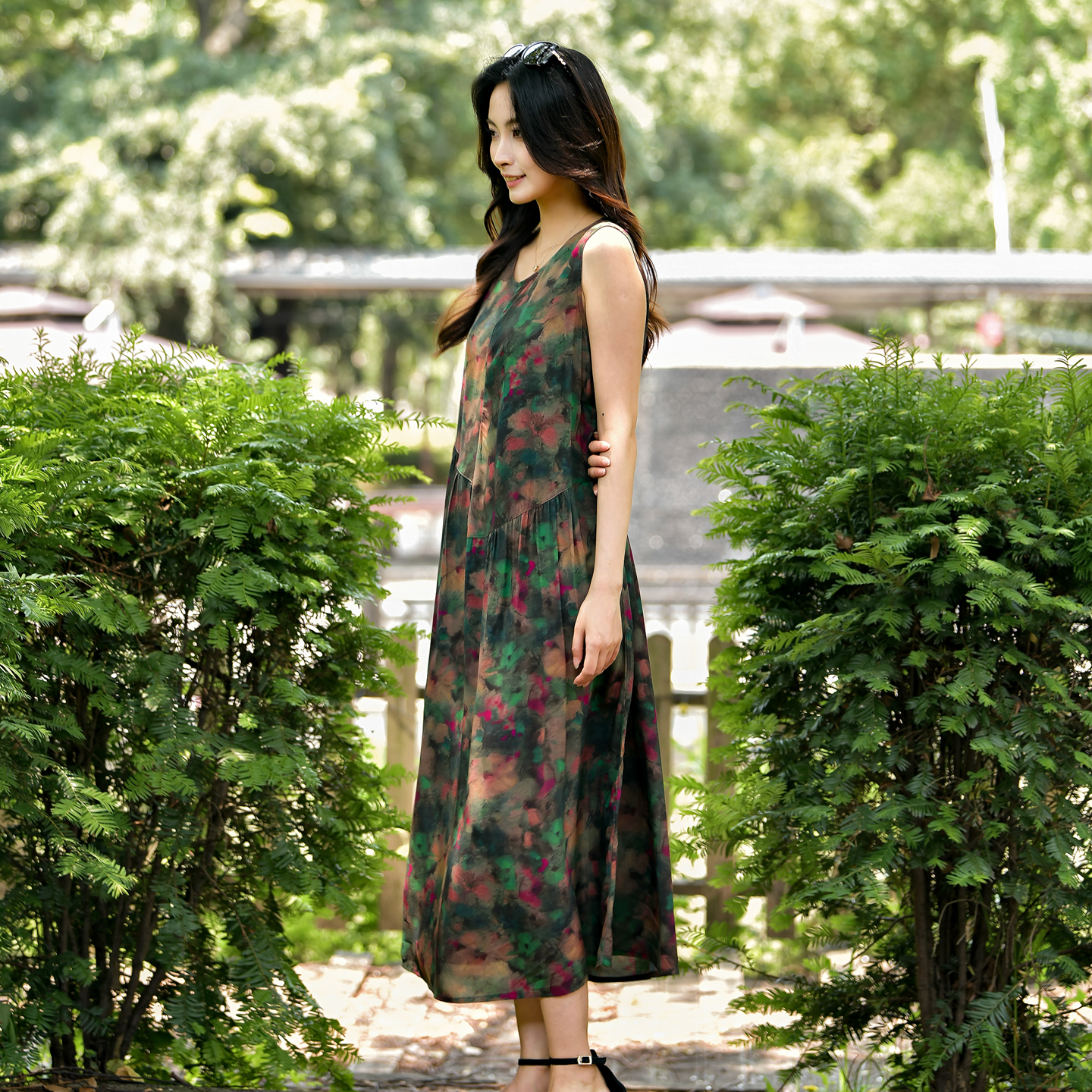 无袖夏季新款棉绸连衣裙宽松大码女人造棉外穿旅游度假外穿长裙子