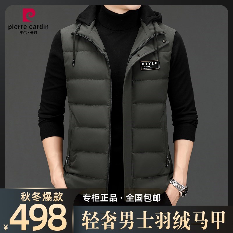 皮尔卡丹羽绒马甲高档男士加绒加厚保暖白鸭绒无袖背心夹克外套男