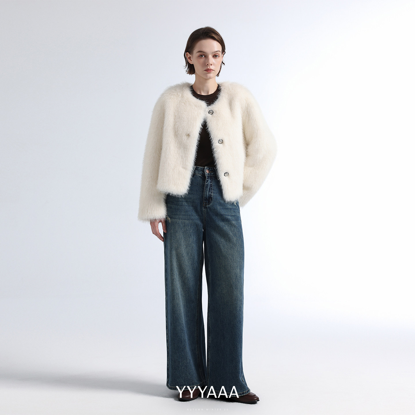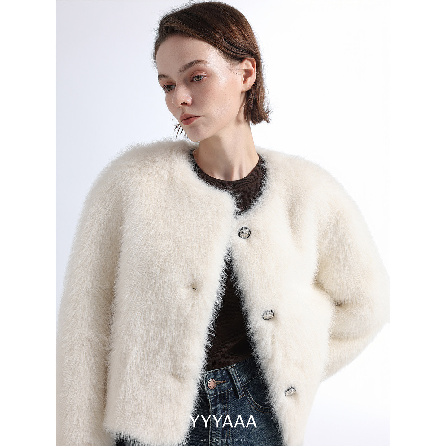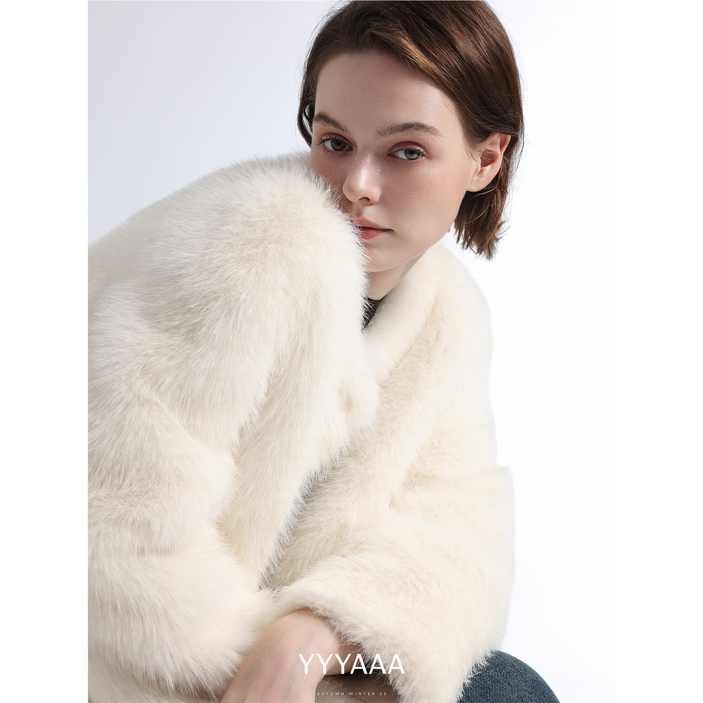 YYYAAA白色皮草外套女秋冬季2025年新品千金气质短款皮毛一体大衣