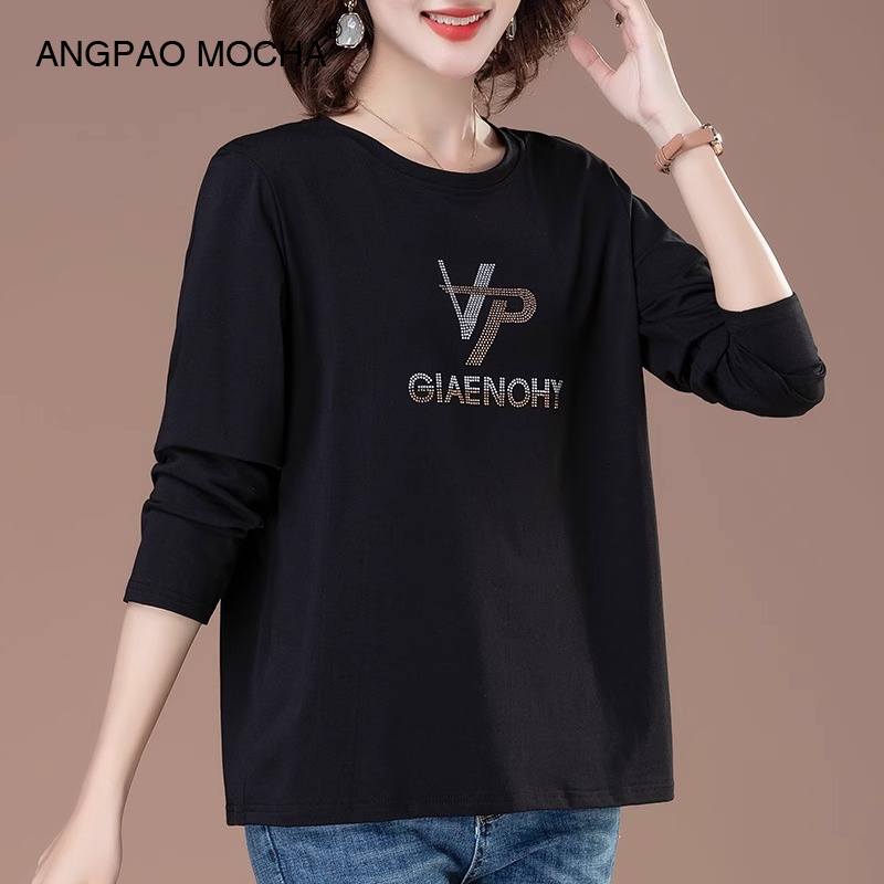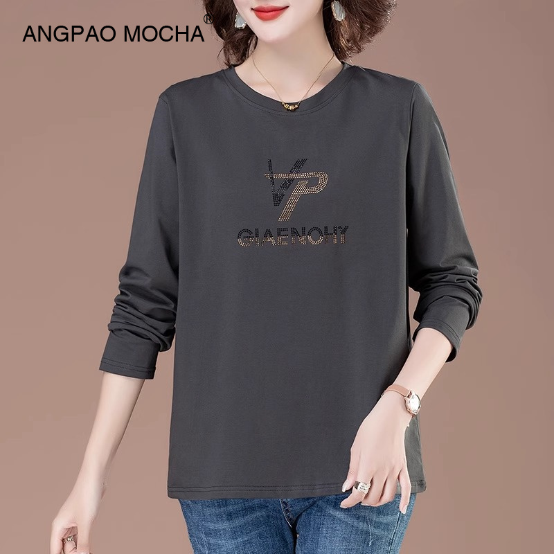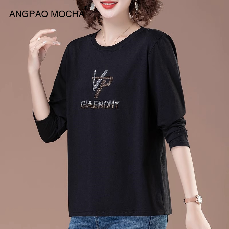 长袖t恤女2025春夏新款圆领打底衫中年妈妈宽松洋气大码体恤上衣