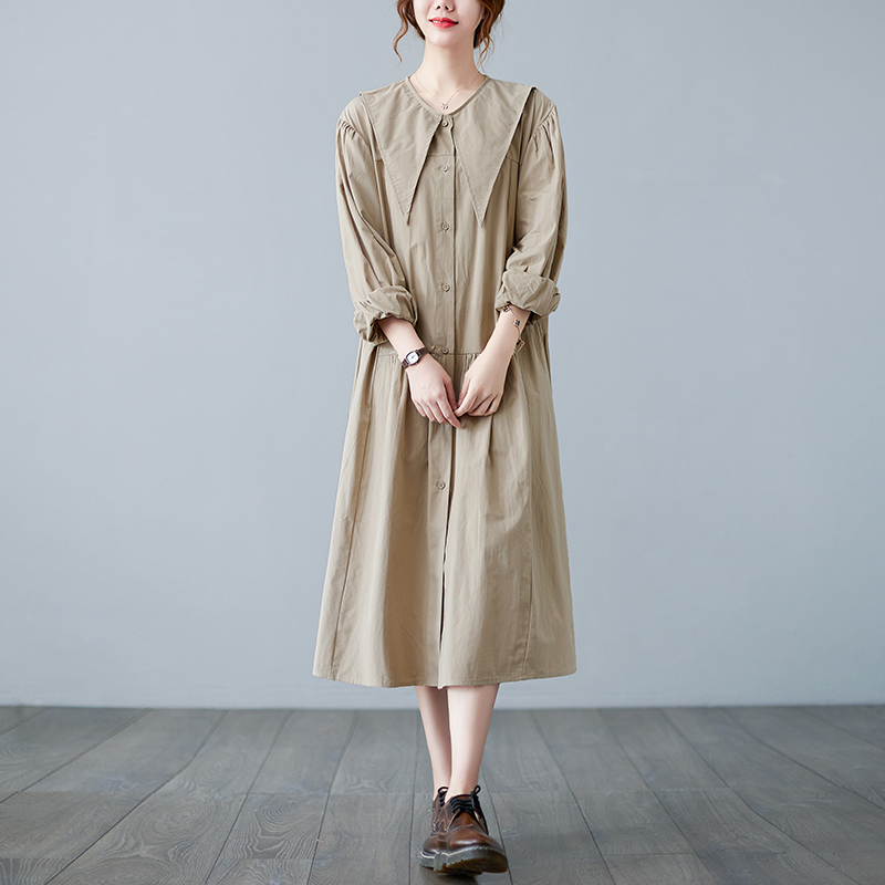 小菲家~海军领连衣裙女中长款秋季设计感小众长袖显瘦宽松衬衫裙