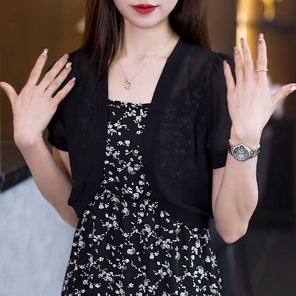 夏季薄款简约小披肩吊带裙外搭开衫百搭罩衫短款黑色显瘦坎肩外套