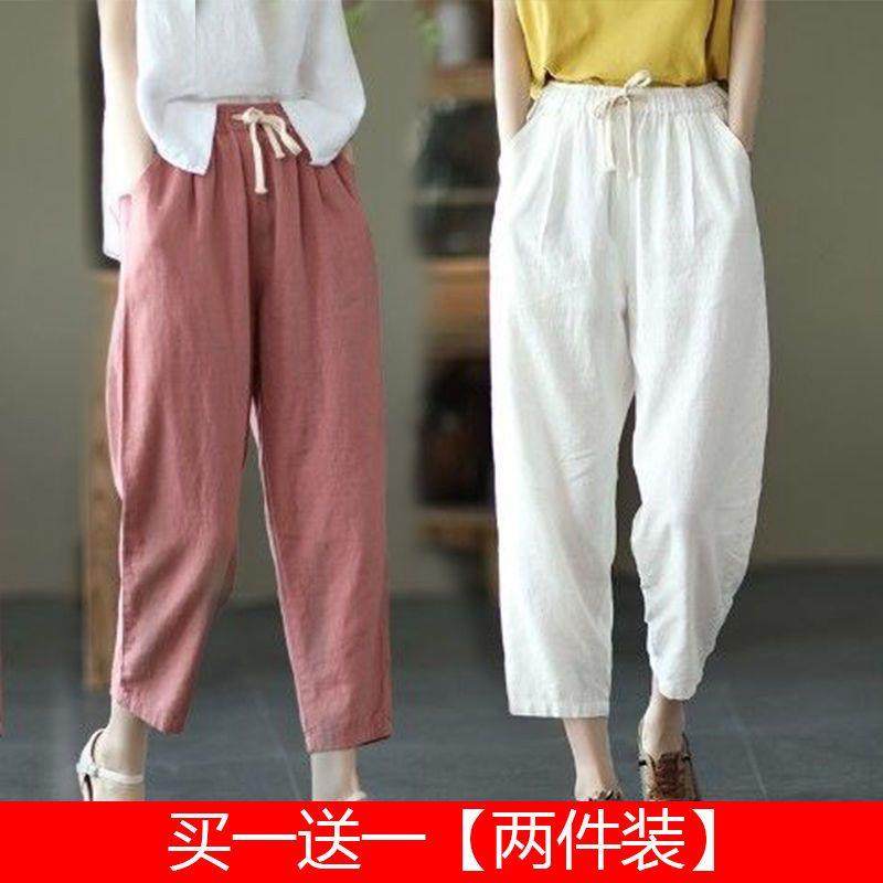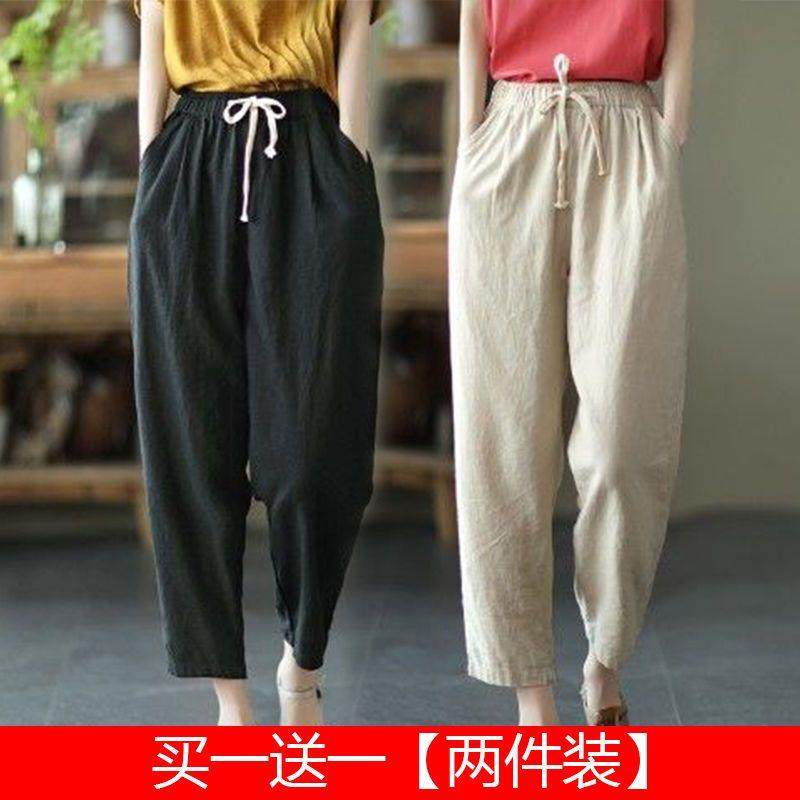 单/两件 纯色萝卜裤女夏季文艺复古哈伦裤宽松百搭休闲九分裤子
