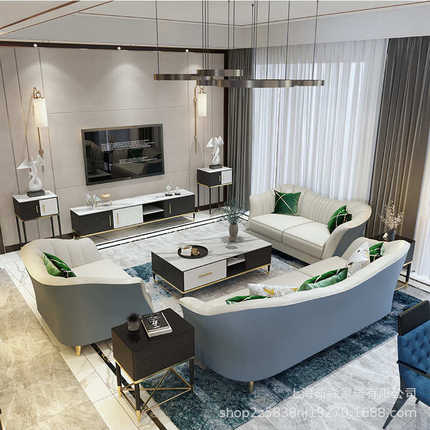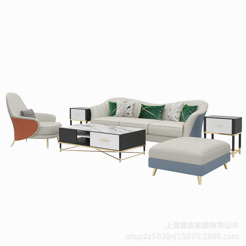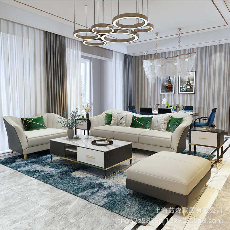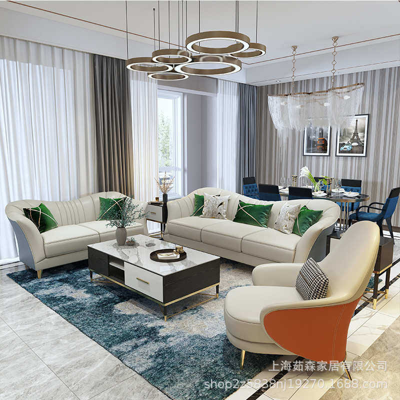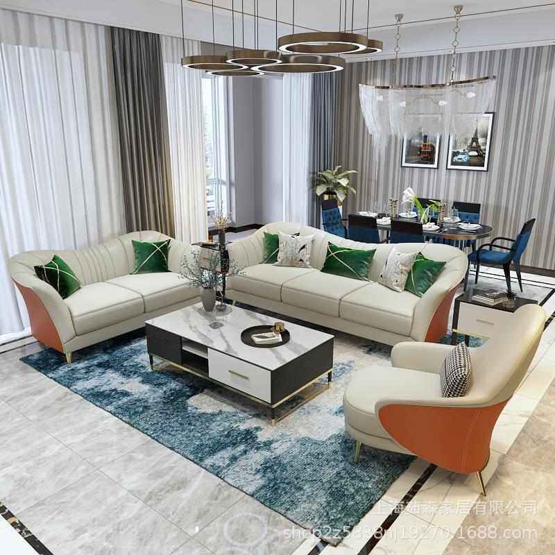意式轻奢皮艺沙发后现代小户型布艺沙发简约美式单双三人客厅组合