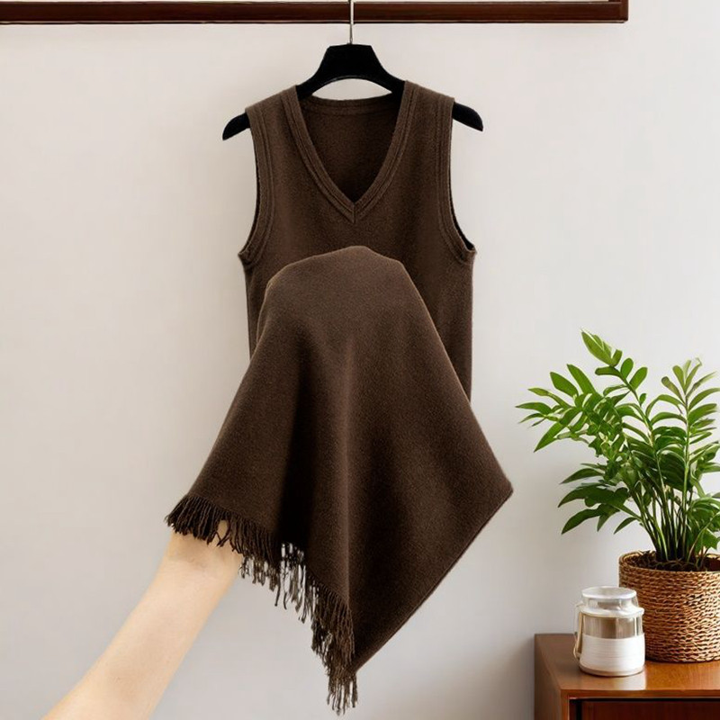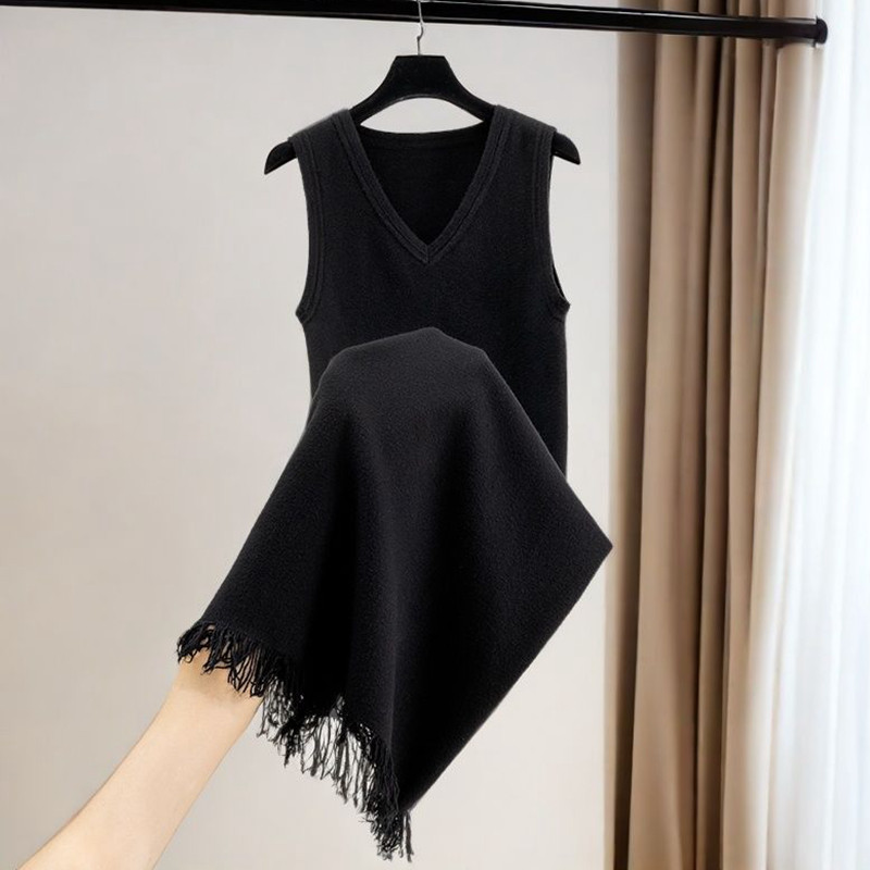 羊毛V领针织背心连衣裙女2025秋冬新款无袖内搭打底裙外穿毛衣裙
