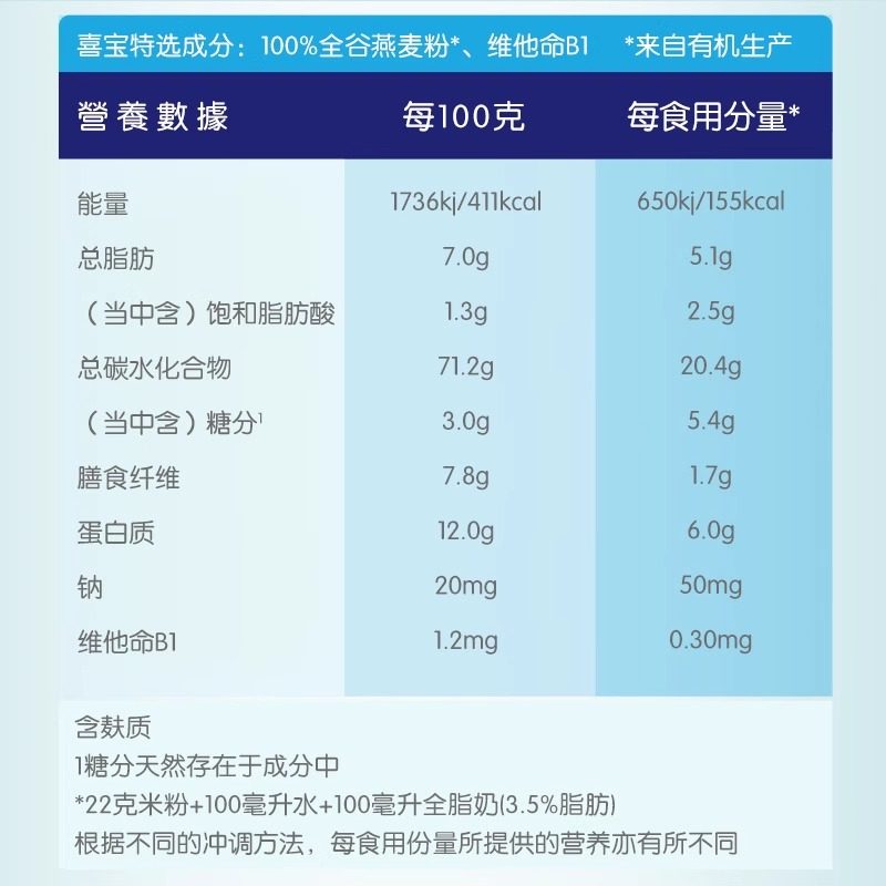 喜宝HiPP 港版德国原装进口婴幼儿辅食米粉有机燕麦米糊 200g/盒