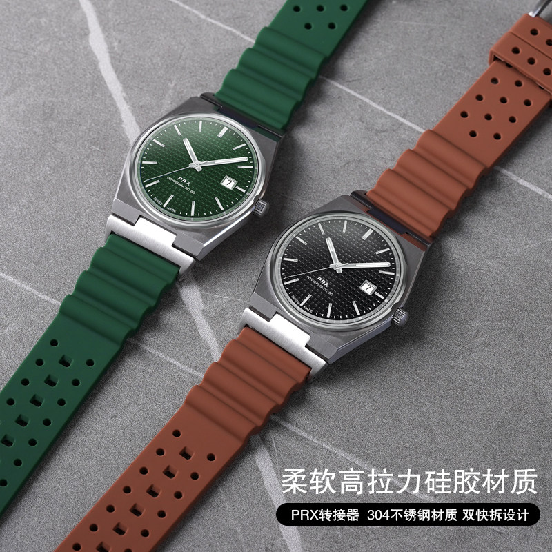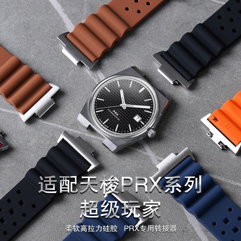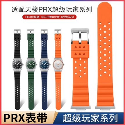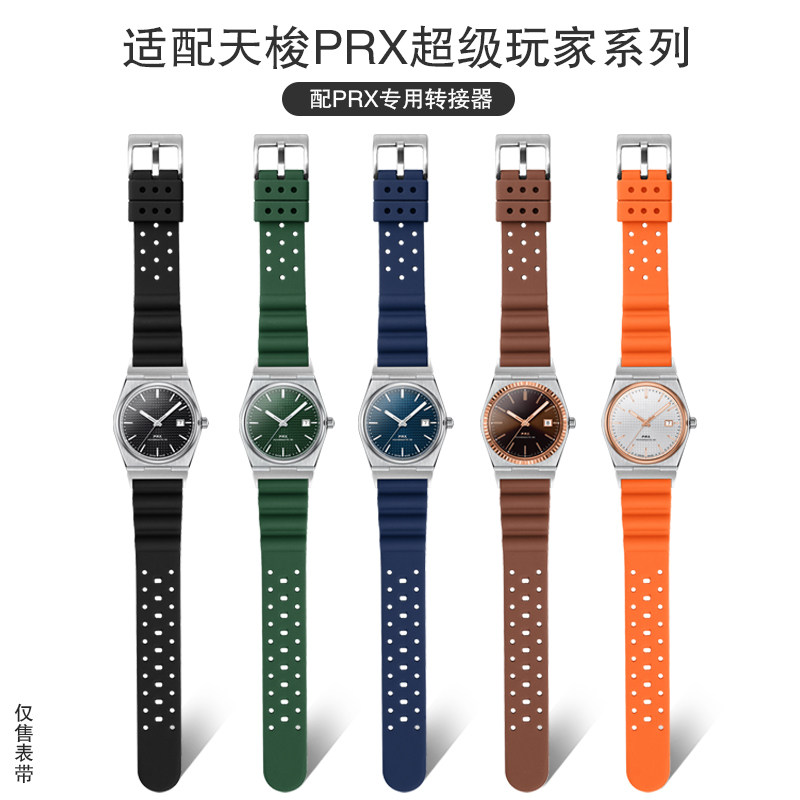 适用Tissot PRX表带弹力橡胶透气洞洞男款天梭超级玩家表带12mm