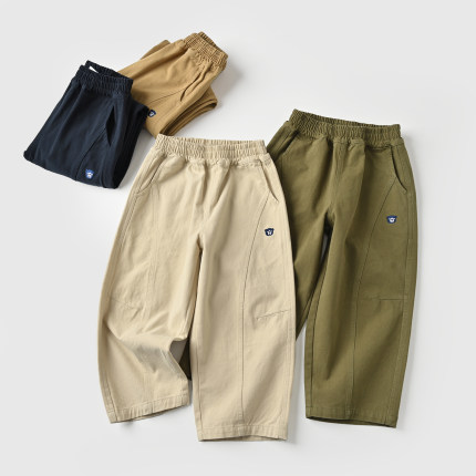 梭织全棉弯刀裤 儿童纯棉休闲裤 男女童宽松长裤中大童春秋款童装