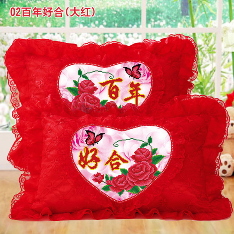 新款印花结婚喜庆简单十字绣单人抱枕手工刺绣卧室情侣枕套一对装