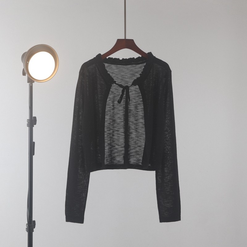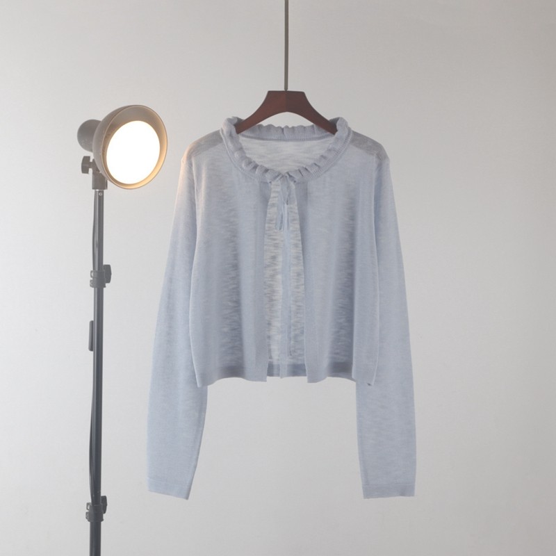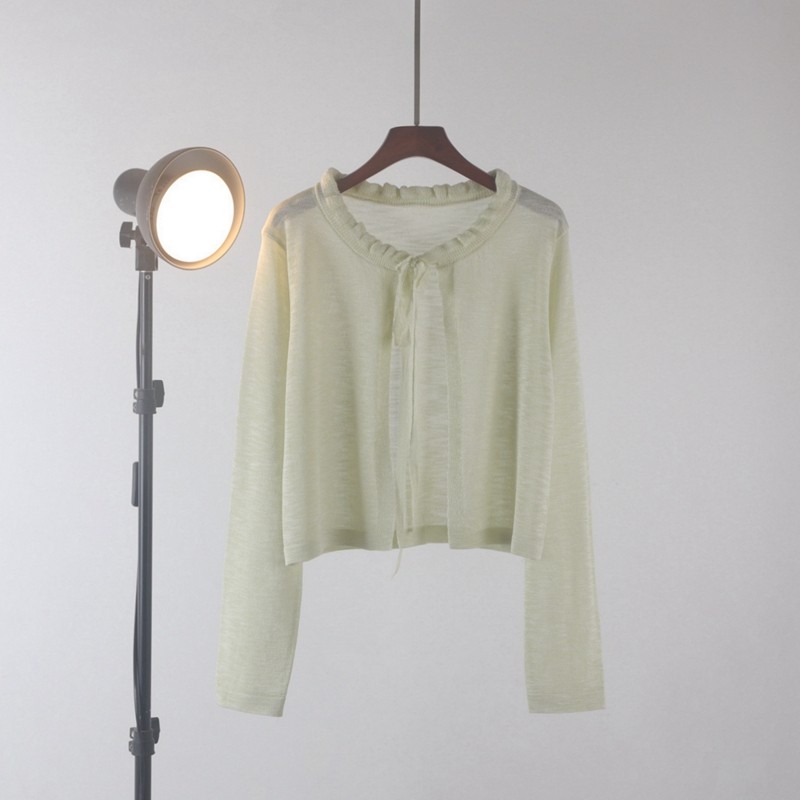 薄款空调针织衫女开衫短款披肩系带上衣夏季防晒罩衫配连衣裙外套