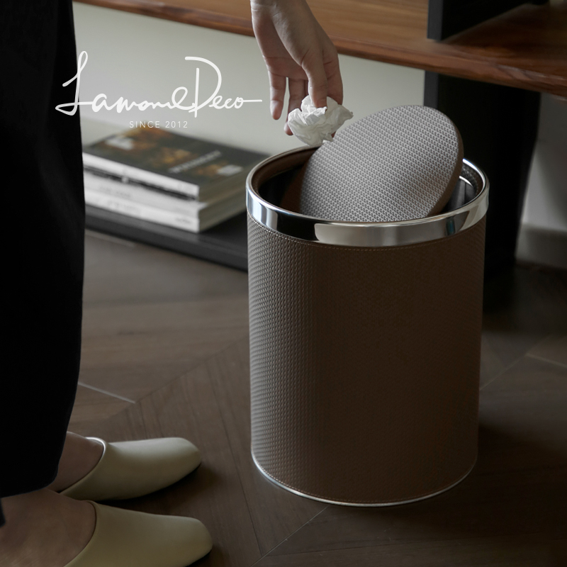 LamomeDeco带盖垃圾桶家用客厅轻奢高档高颜值卧室办公室装饰纸篓