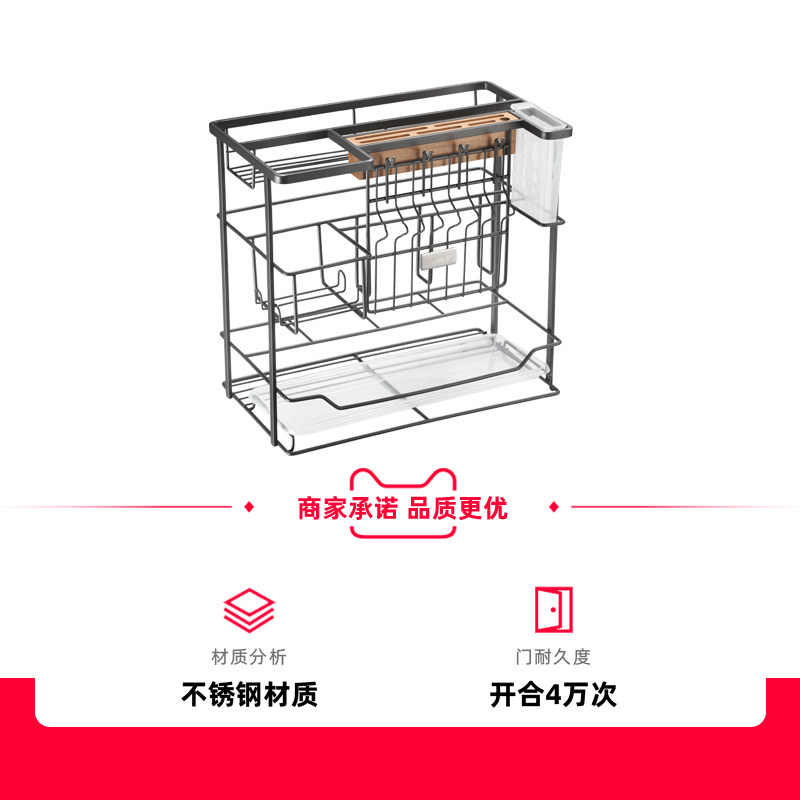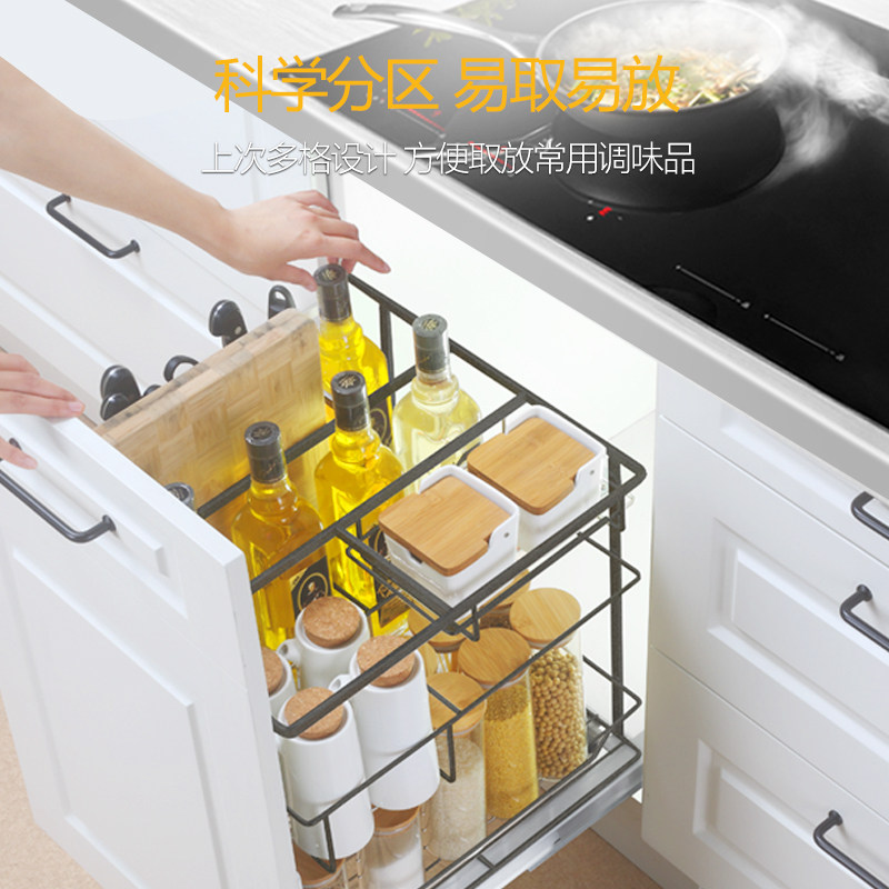 欧琳黑色抽屉式双层阻尼橱柜拉篮