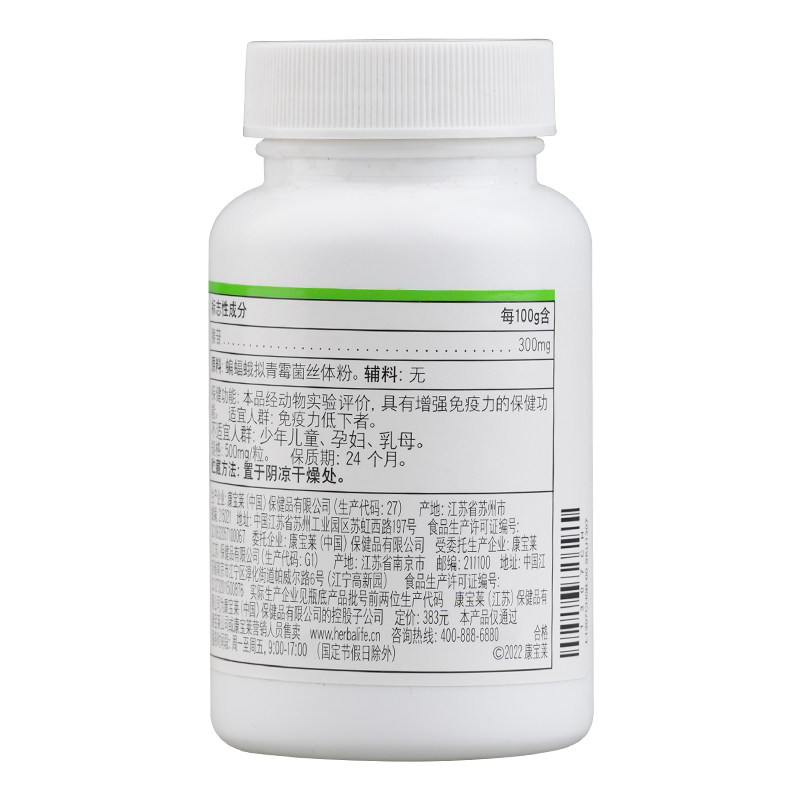 Herbalife/康宝莱 牌蝙蝠蛾拟青霉菌丝体粉胶囊 500MG/粒*60粒