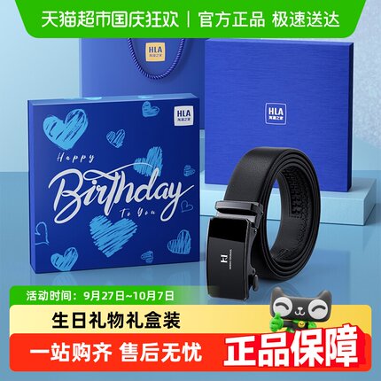 海澜之家男士皮带真牛皮自动扣腰带礼盒装生日节日礼盒装礼物