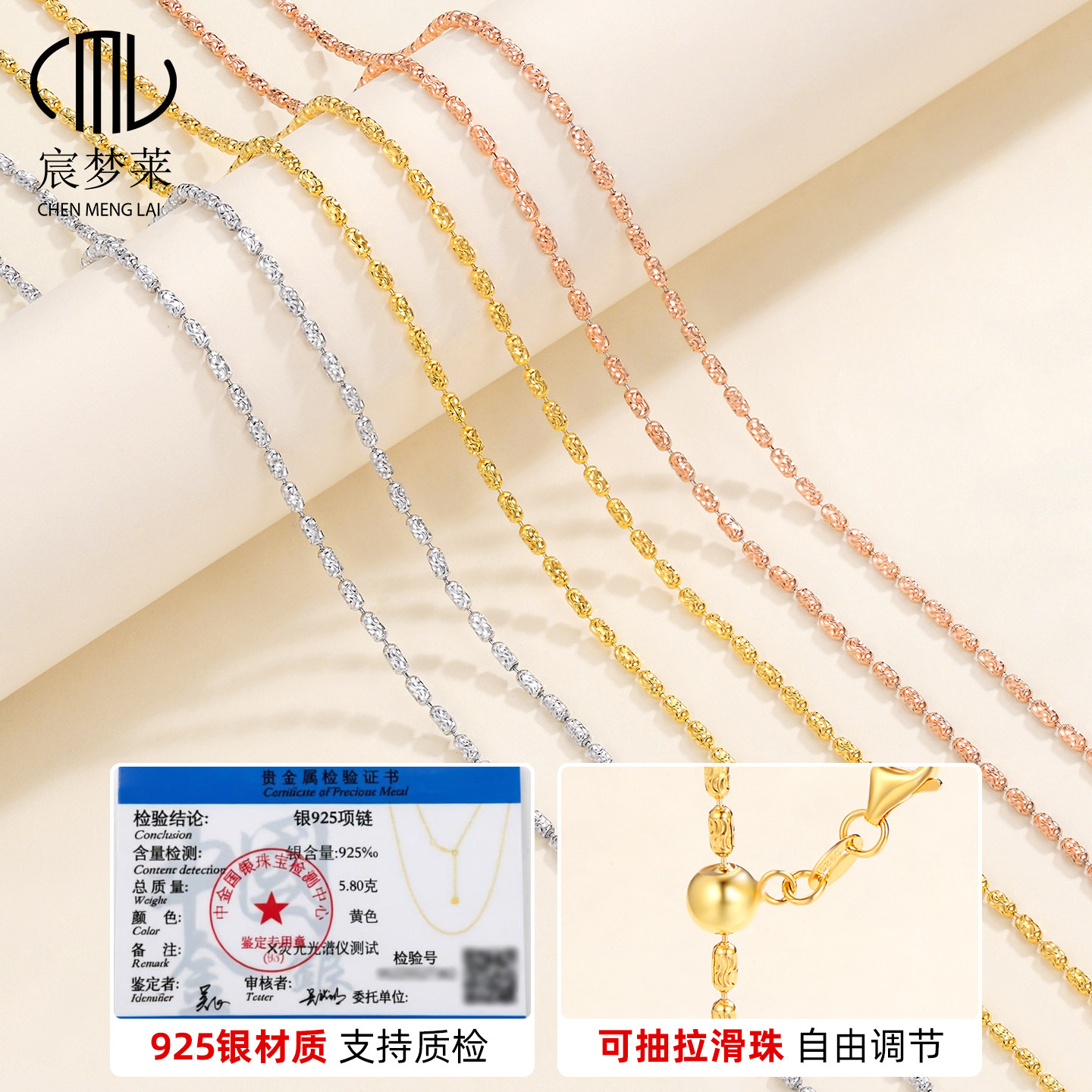 925纯银项链橄榄珠链可穿吊坠银素链可调节翡翠玉坠配链爆闪链子