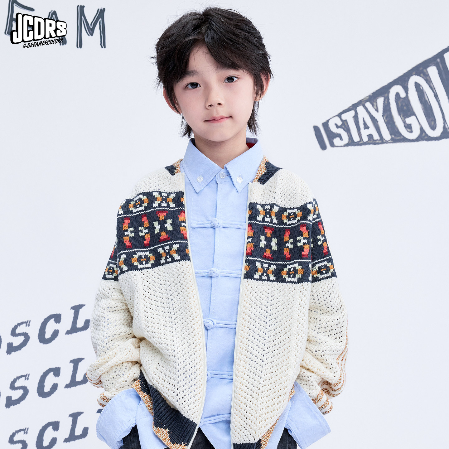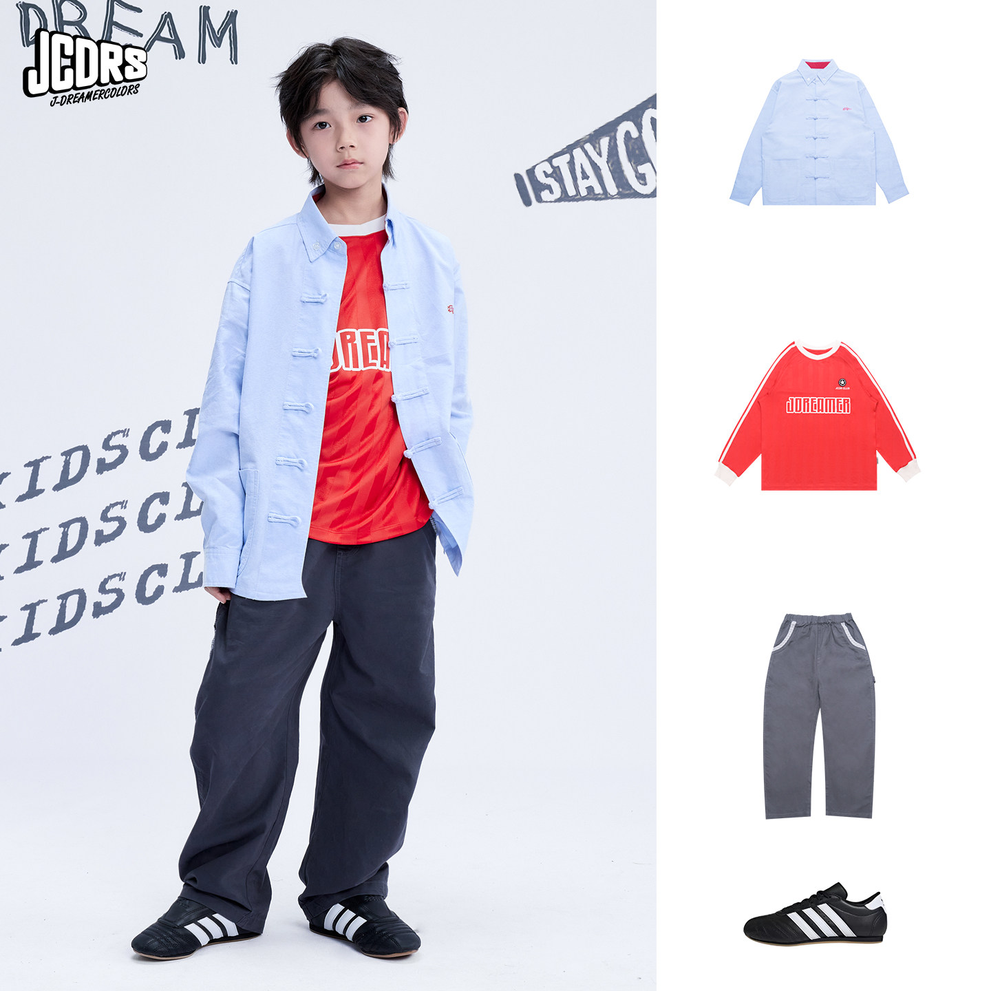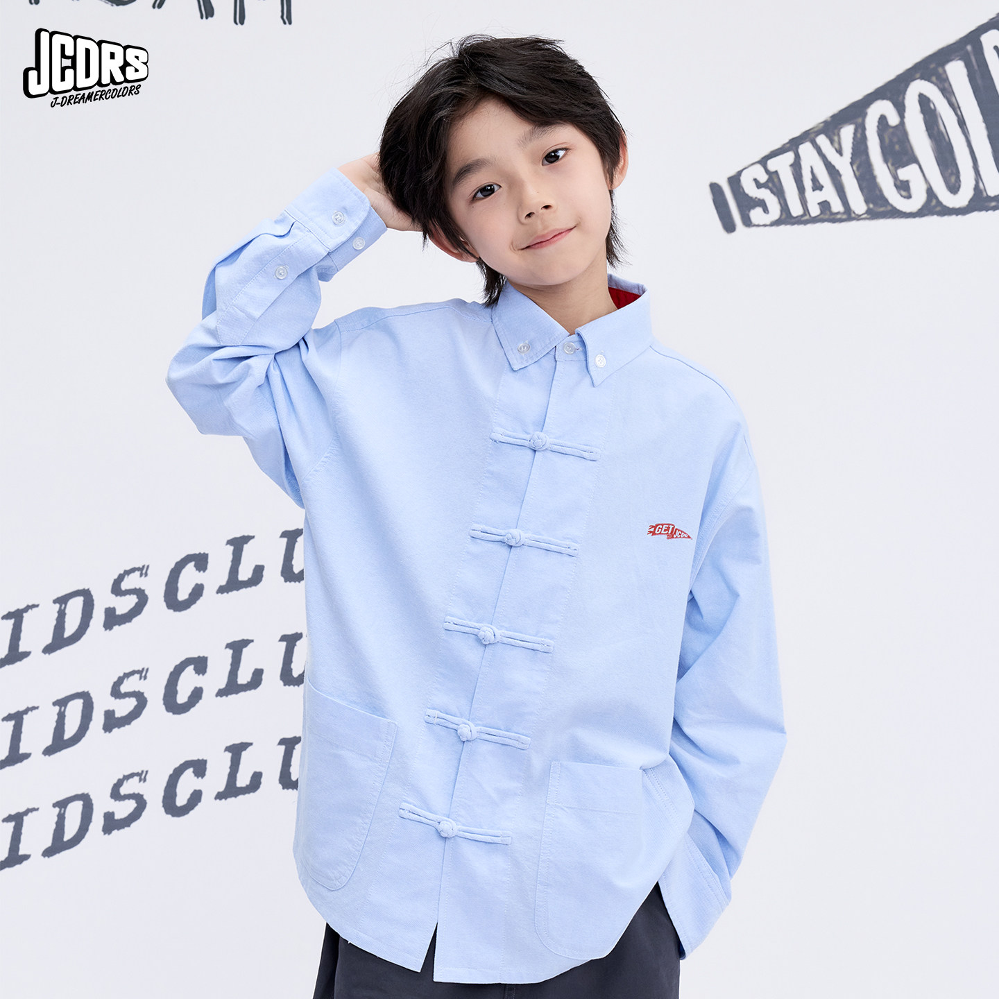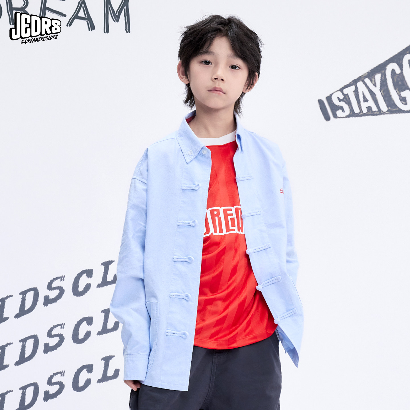 JAC梦想家童装◆水洗软牛仔蓝衬衣上衣中大童男女儿童盘扣衬衫