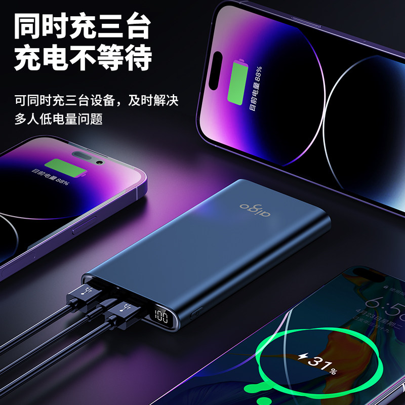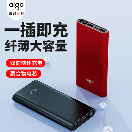 【3C认证】爱国者充电宝10000毫安超薄便携适用于安卓苹果小米vivo移动电源小巧便携超大容量正品金属机身