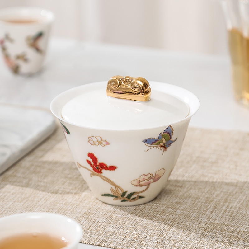 松发瓷器新中式整套功夫茶具套装福禄礼盒送礼轻奢高颜值茶杯盖碗