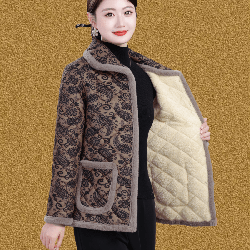 妈妈冬装加绒棉衣民族风花棉袄2025新款洋气中老年人女装棉服外套