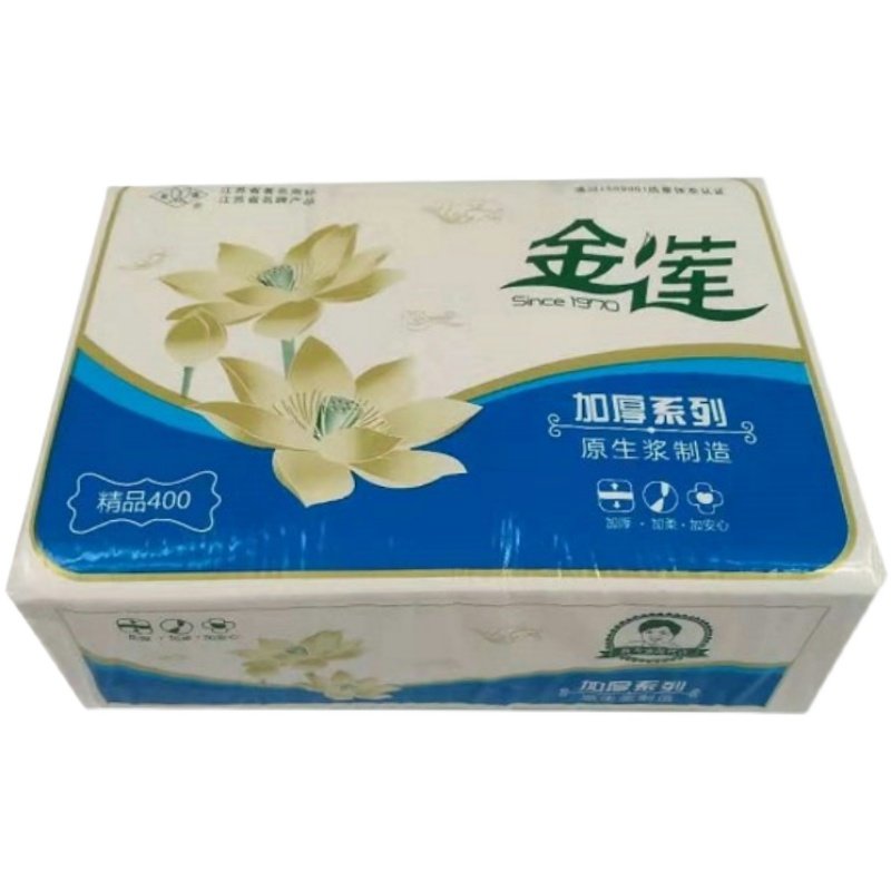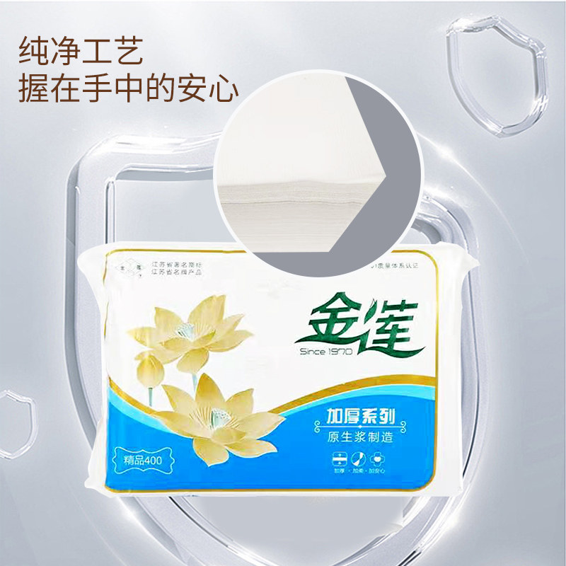 金莲卫生纸精品400加厚原生浆家用5包厕纸平板手纸巾皱纹老式草纸