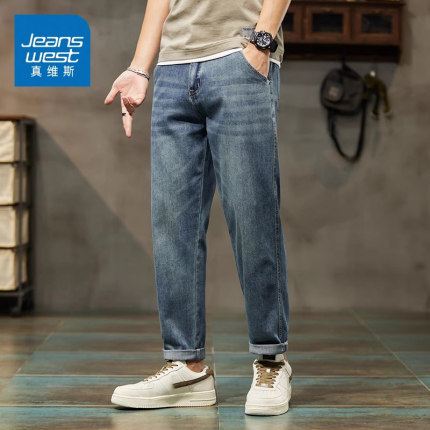KZ真维斯秋冬季九分裤潮牌牛仔裤男士弹力弹性宽松高端休闲男裤子