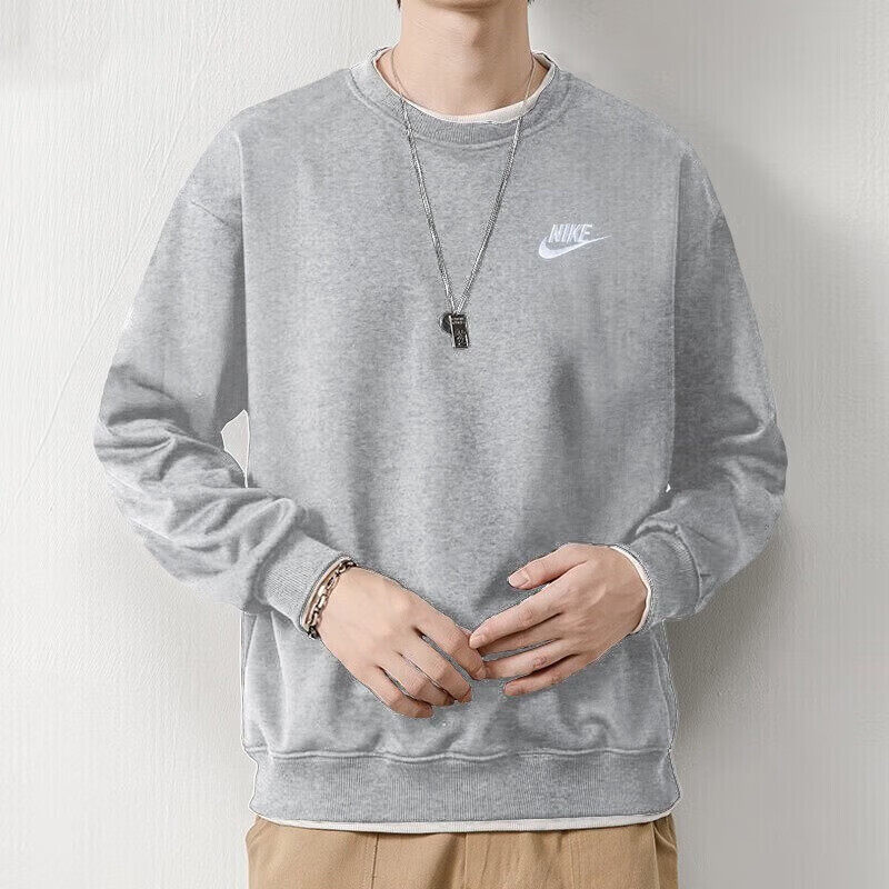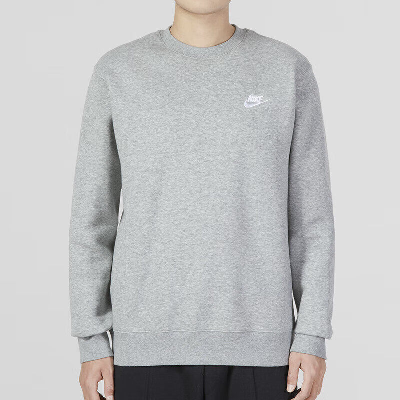 Nike耐克灰色加绒卫衣男装保暖休闲上衣正品圆领套头衫宽松运动服