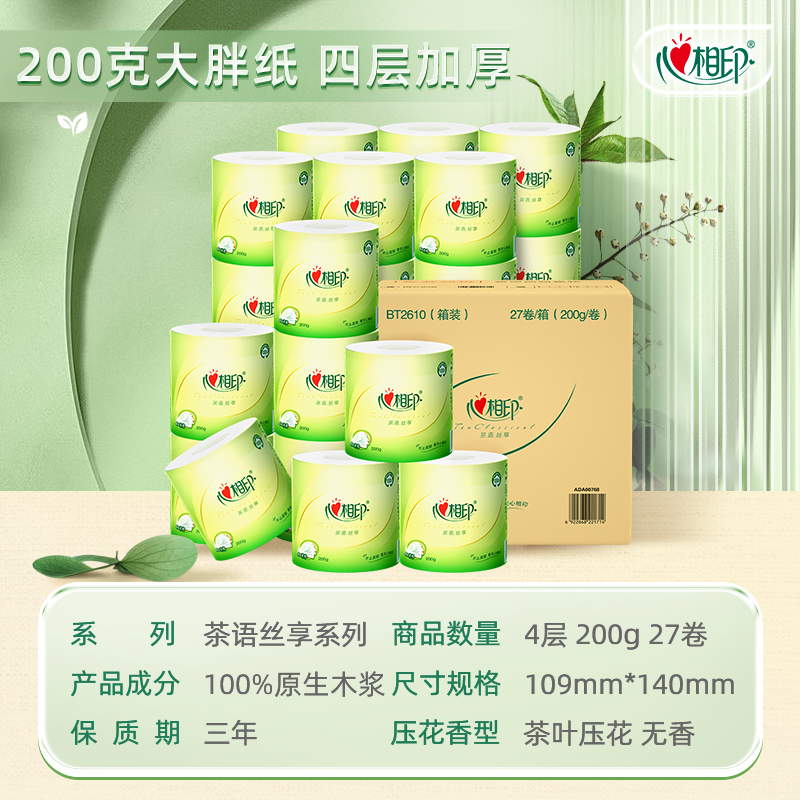 【下拉享优惠】心相印茶语有芯卷纸卫生纸巾卷筒纸厕纸家用实惠装