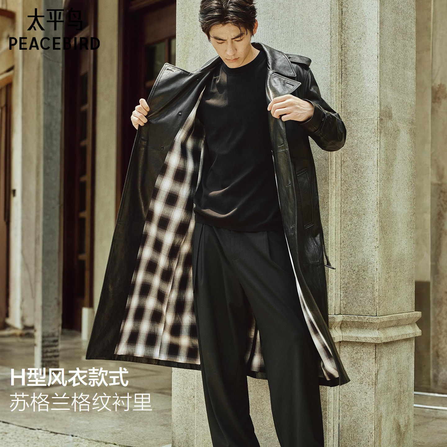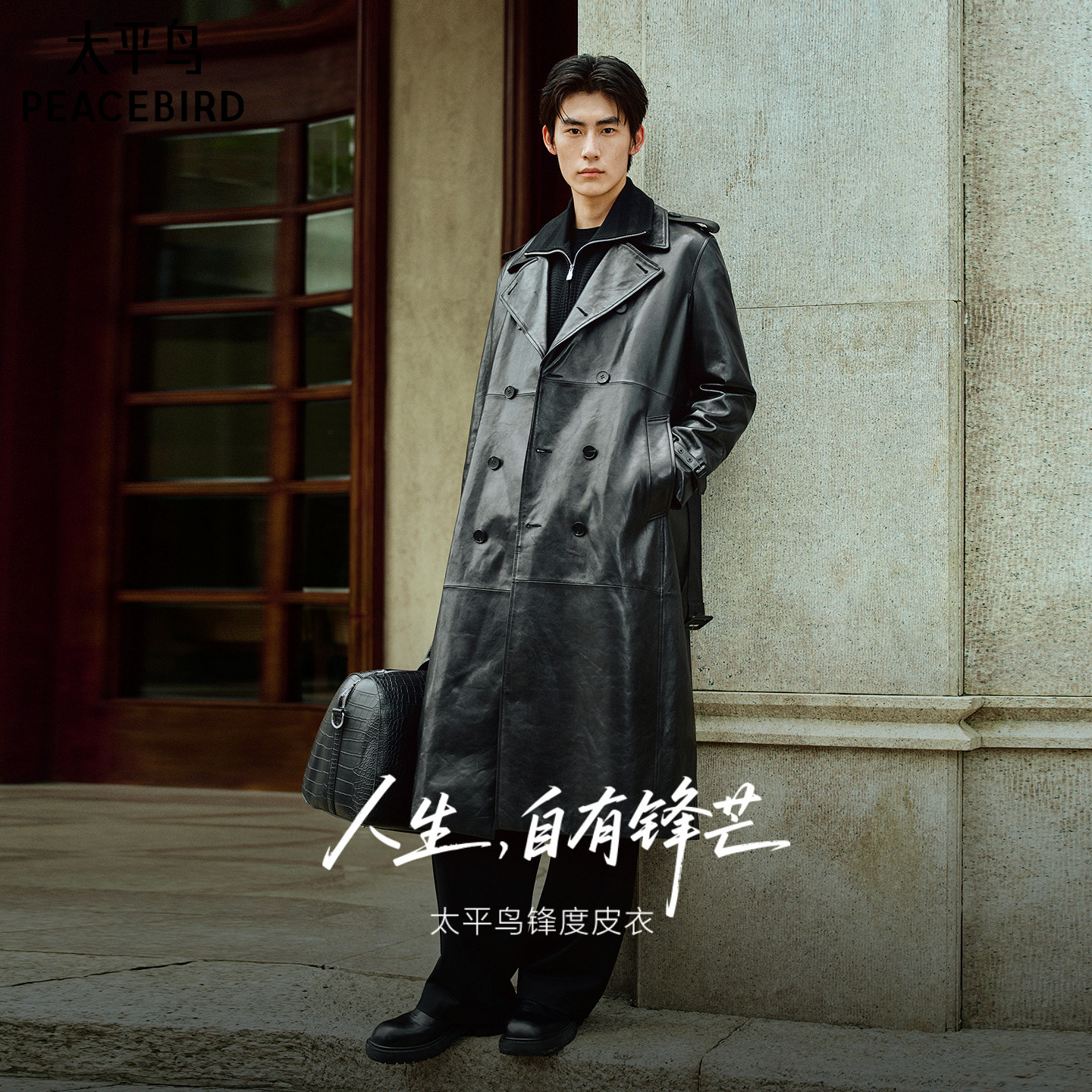 【锋度皮衣】太平鸟男装长款绵羊皮夹克翻领真皮外套B1BDF4F12
