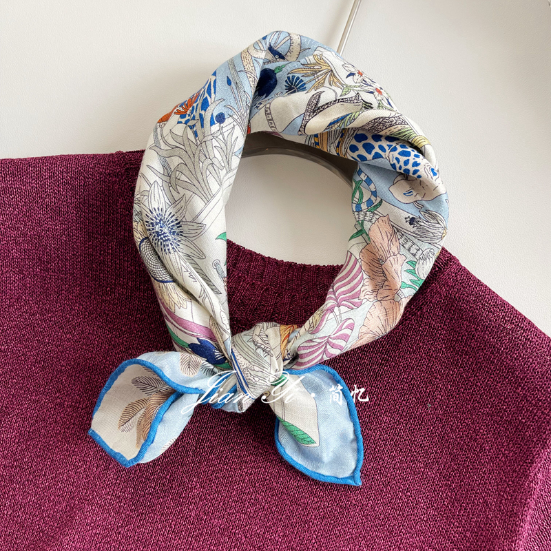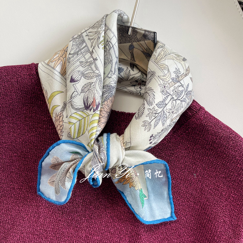 【奇珍乐园】经典百搭提花真丝羊毛65cm大方巾秋冬保暖披肩围巾