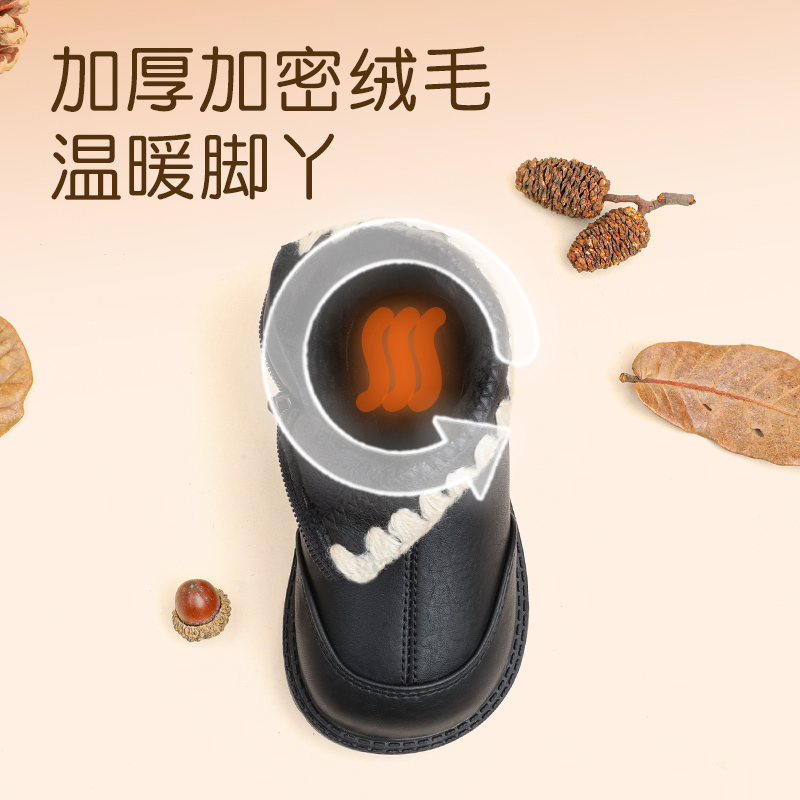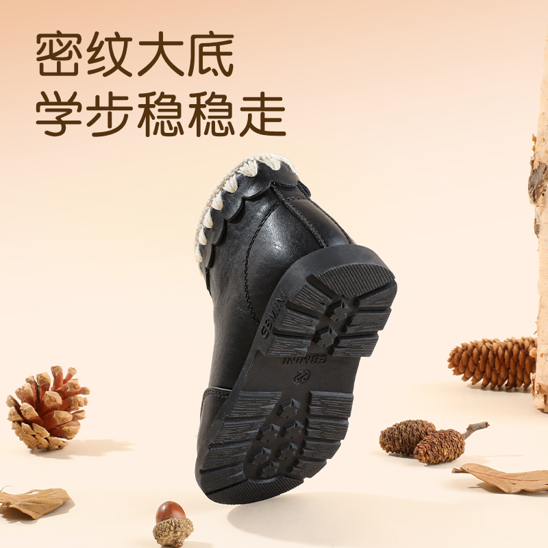 英贝米尼女童棉靴冬季保暖加绒儿童靴子女宝宝皮靴软底雪地靴短靴