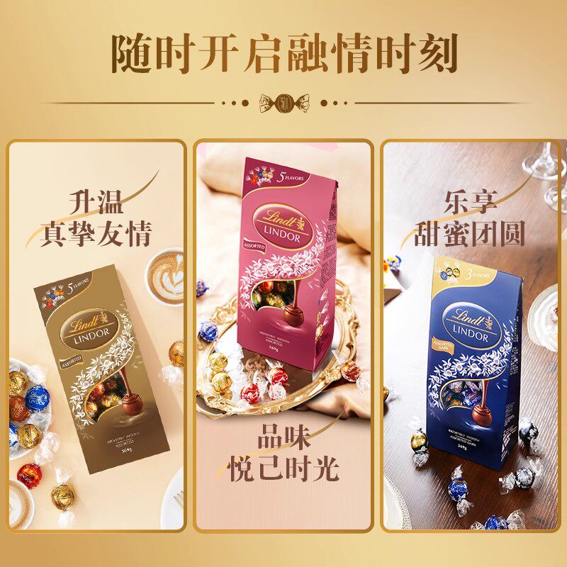 Lindt进口高端瑞士莲软心牛奶开心果黑巧克力569g经典喜糖伴手礼