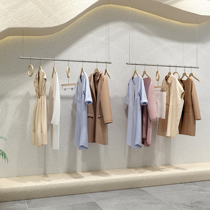 不锈钢服装店展示架女装吊顶悬挂衣架上墙吊架挂衣杆子墙上壁挂架