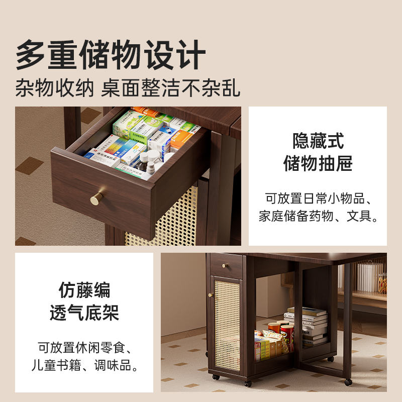 折叠餐桌小户型家用圆形餐桌中古风餐桌多功能2025新型可移动饭桌