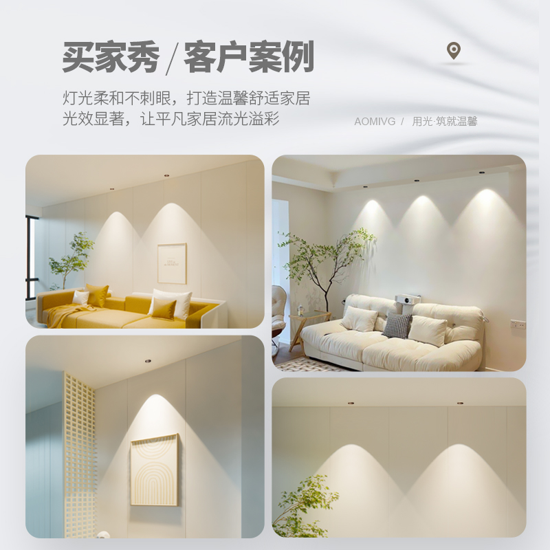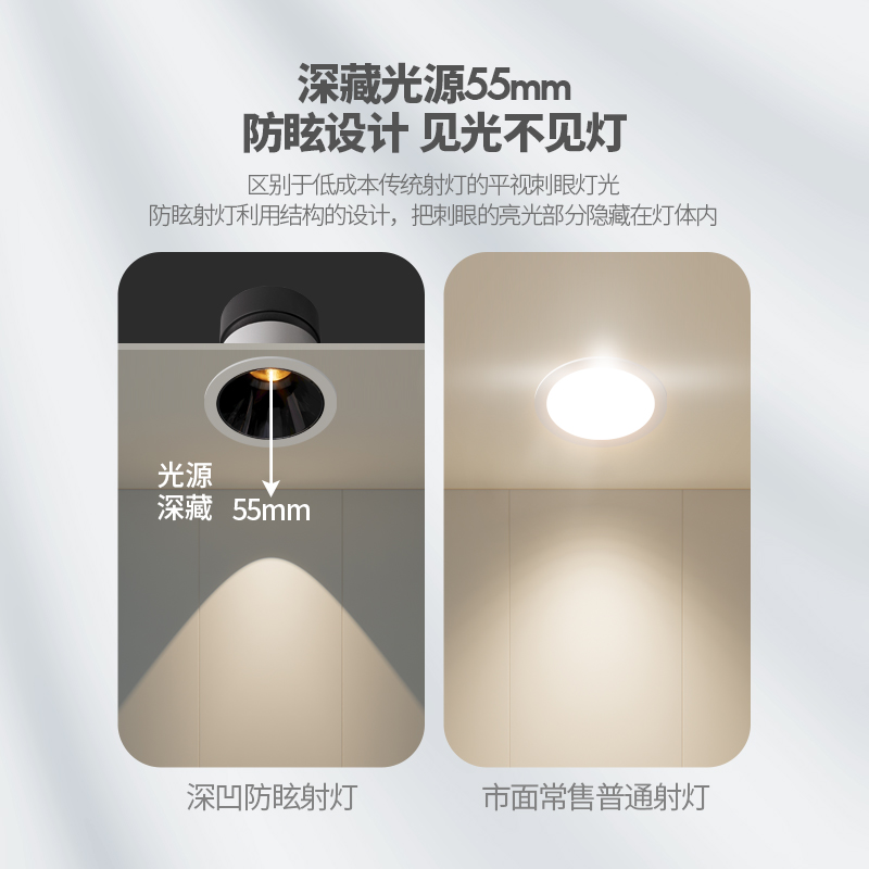 小山丘射灯嵌入式家用led天花灯客厅无主灯防眩窄边框洗墙cob筒灯