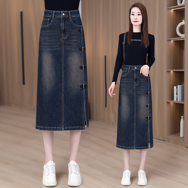 2025新款夏季复古高腰中长款遮胯a字半身裙牛仔裙女垂感a字伞裙